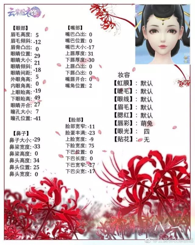 看到这么多分享数据 大人们是不是觉得很赞呢~ 你们一定还有比我看到更美更俊更艳的脸呢 独乐乐不如众乐乐 把你的捏脸数据上传图片社区吧! ps:捏脸数据上传可以有两种方式: 1、如上图所示,做成图片与女儿图拼接上传。 2、以文字的形式,直接与女儿图一起发布。