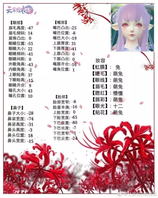 上次分享“杨洋”脸数据后,云裳一下子多了很多英俊的小公子,看来大家对半半的推荐很满意哦~既然如此,半半就多分享一些好看的捏脸数据给大人们,敲黑板啦,划重点啦,拿小本本记好了~ 以下作品均来自—云裳羽衣原创站 清纯无辜兔女孩 萌萌兔女孩 可爱惹人怜 哇,这种小萝莉什么的,不要太可爱