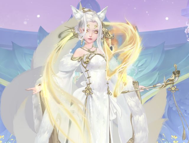 在漫天白雪中缓步走来的美人,冰肌雪肤,楚楚动人。 狐耳微动,侧身听月华流转之声,手持醉迷烟,眼波流转间尽是惑人的美丽。 流光萦绕在旁,华丽的服饰似曾相见。 突然明悟,这就是那被世人口口相传的 【九尾留仙】 。