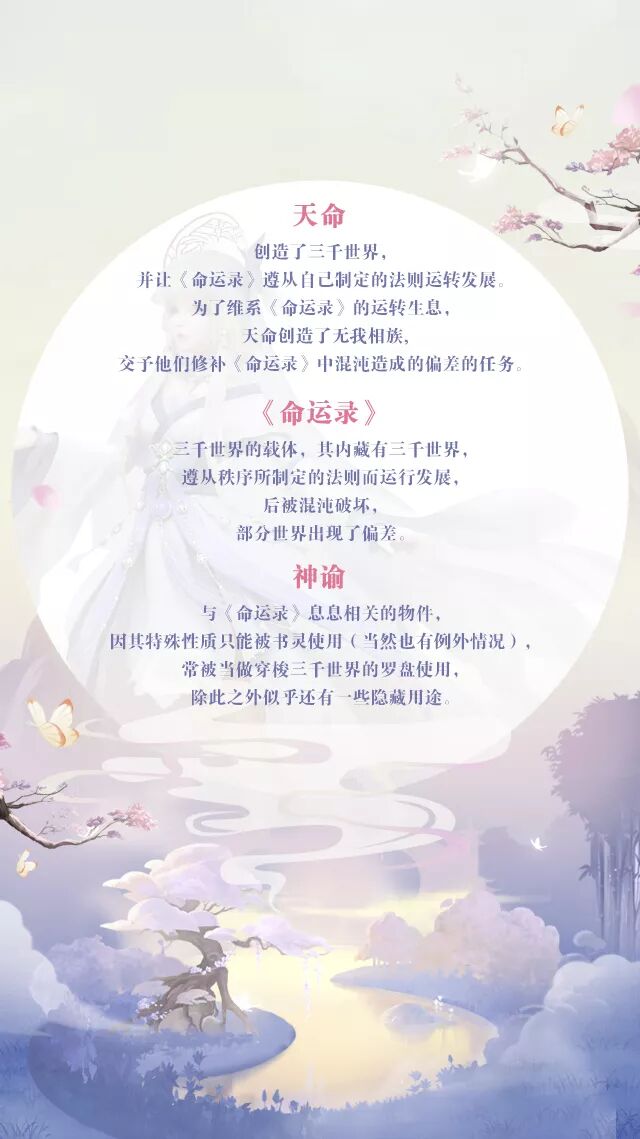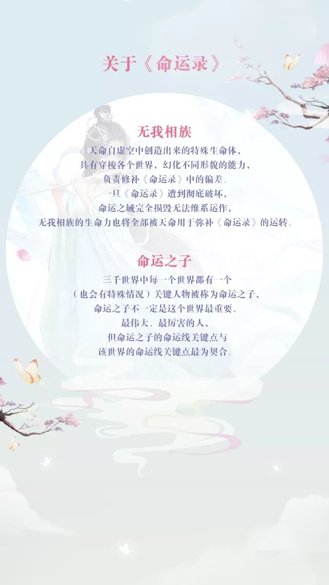 《命运录》 为何存在?意图毁坏《命运录》的是何人?无我相族所肩负的 使命 ,仅仅只是守护《命运录》这么简单吗...... 这只是一切的开始, 三千世界 还有许多许多的秘密, 等待大人们在游戏里去探索噢~ 来源:云裳羽衣手游 阅读原文