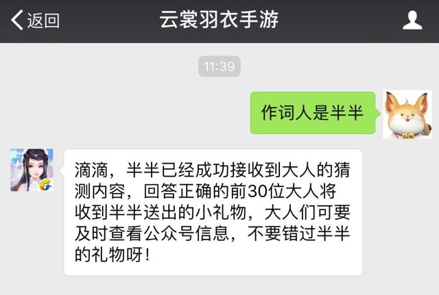 你轻落指尖,月下拨弄琴弦,一曲云裳羽衣恋 人世间,漫天飞舞着思念 故事鲜艳,而缘分却太浅 我的爱恋,竟如此的明显 我不停的默念,想牢记你的容颜 …… 这位作词老师是一位有名的大人物呢,尤其 擅长撰写中国风歌词 ~大人可以猜到他是谁吗~ ↓↓↓ 主题曲作词人竞猜活动 【活动时间】 6.26-6.27 【活动方式】 大人们只需要通过两种方式,告诉半半对于主题曲作词者的猜测,猜对的大人就有可能获得半半精心准备的小礼物哦!