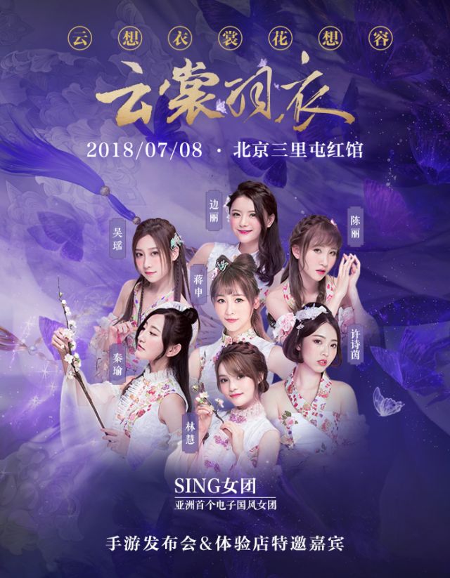 SING女团 亚洲首个电子国风女团 ,因梦相聚,为梦执着。 此次发布会上,SING女团的小姐姐们将会来到现场为云裳打call,未来还会为云裳羽衣定制具有专属少女感的 电子国风音乐应援曲 。