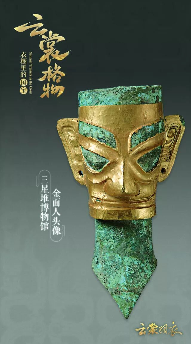 明尊卑、别贵贱,以礼乐制度立国的西周,一直是无数学者心中的乌托邦。作为大成圣至先师的孔老夫子,其“仁治”理念正是脱胎与此。 云裳与 山西博物院 合作,为大人们展现山西曲沃西周晋侯墓地出土的西周玉组佩,从材质到做工,都在告诉我们,老祖宗们 在那个古老的时代,建立了何等伟大的文明 。 金面人头像 在巴蜀之地, 三星堆遗址 的出土,向全世界宣誓,中华文化,是如此的神秘且多样化。