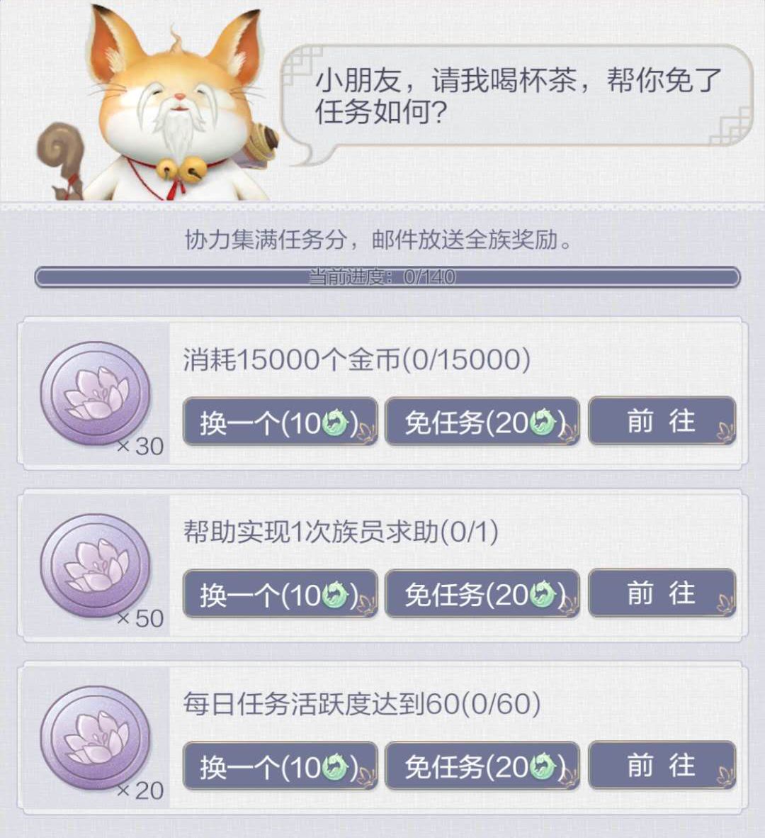 1. 新增【内务处】 大人每日可完成内务处的“任务”,获得 家族币 奖励。任务难度越高, 奖励越丰厚 。大人们可以花费祈玉更换任务,或直接达成任务。