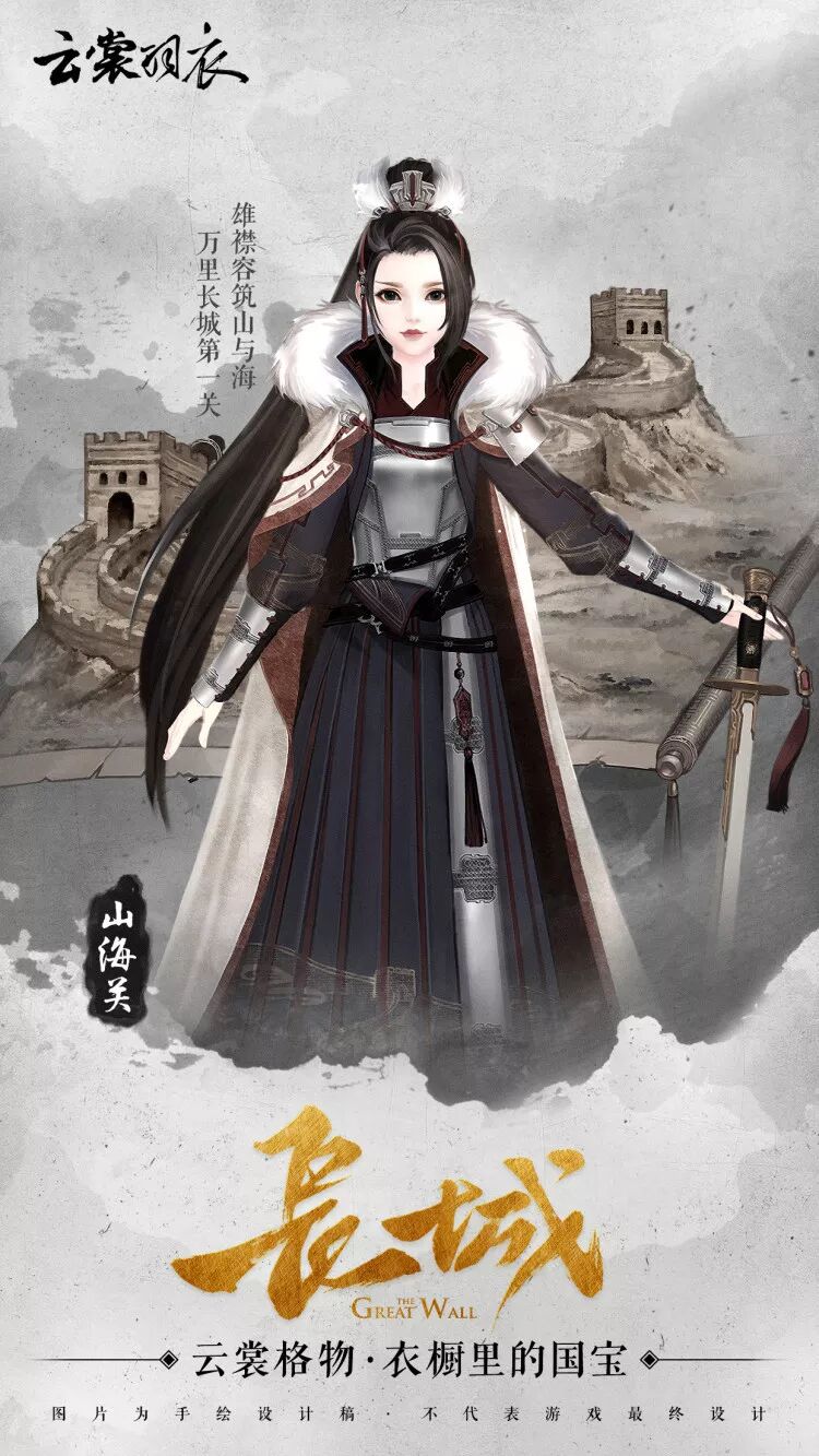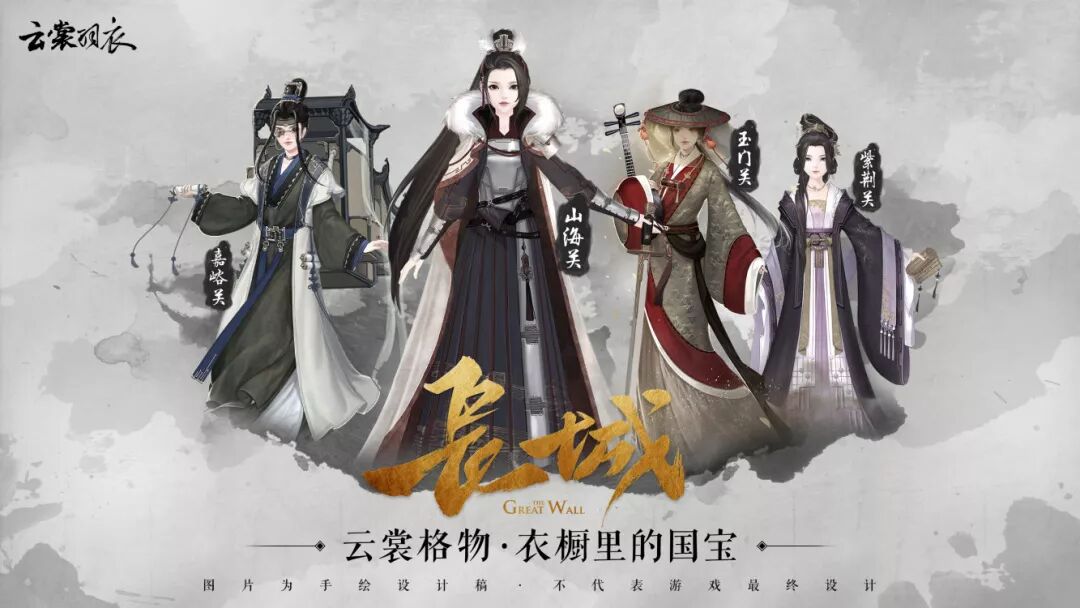 7月30日,长城修缮仪式启动,正式揭幕了《云裳羽衣》与中国文化遗产研究院、中国文物保护基金会以及腾讯基金会联合打造的游戏内 长城特别版本 合作。 该合作早在游戏设计研发阶段便已达成启动,主要内容是将 长城的四个著名关卡 ——山海关、嘉峪关、玉门关、紫荆关,以游戏的形式进行拟人化演绎。 该主题版本目前正在设计制作之中,预计很快将与大人们见面。让大人们体验到长城 著名城关的特色文化 。 云裳格物与长城合作,真的是太赞了!对了还有惊喜要跟大人们说, 云裳要去CJ展啦!