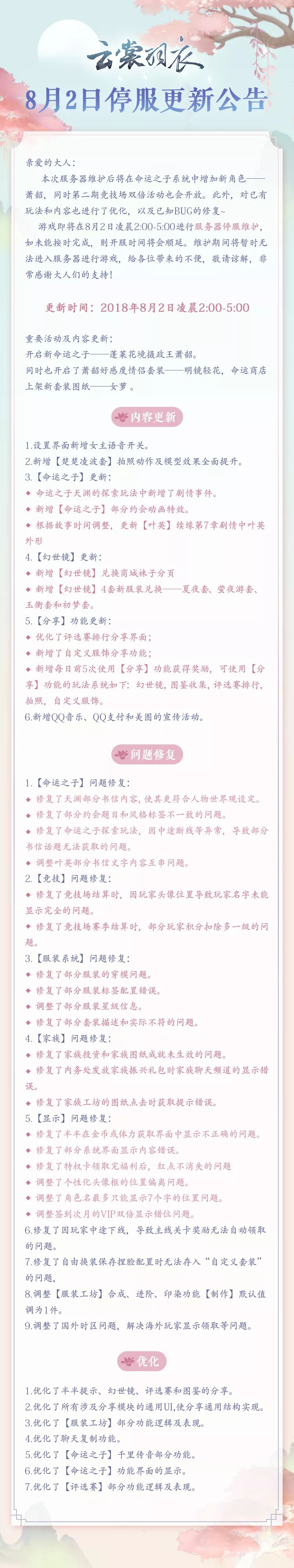 更新预告|命运之子萧韶上线,楚楚凌波全面优化