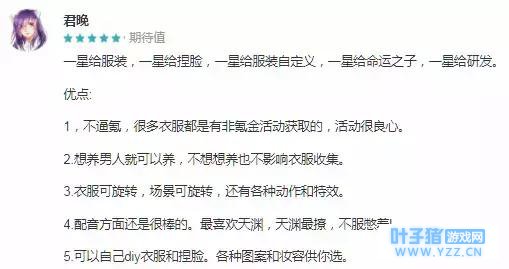 同样的,《云裳羽衣》也引入了服饰的DIY玩法,突破换装游戏固有的格局。玩家可以通过滚动色彩条参数,调节服装各个部位的色彩、饱和度、明暗度等内容。甚至系统中也加入了一键取色、任意位置增加、平铺、对称、放大缩小贴花等功能,俨然像是一个五脏俱全的服装设计应用。 从TapTap的用户评价来看,参与测试的玩家深刻体验到了这些特点。玩家“君晚”在TAPTAP评论中,对于可DIY的服装和捏脸玩法都给出了很高的评价,而对于基于3D模型下的衣服和场景旋转,也表示对她很有吸引力。