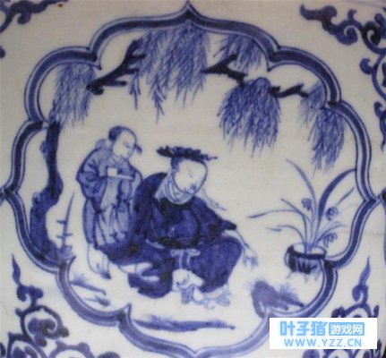 小口外撇,短颈丰肩。纹饰分为三组,肩部饰凤穿牡丹纹。腹部主体纹为四个菱形开光,分别绘。即王羲之爱兰,周茂叔爱莲,林和靖爱,爱菊。