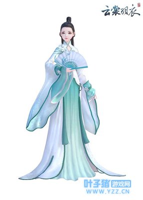 中性风的服饰,以简洁为主,故而只有在肩膀处绣着一朵兰,在袖口处系着两朵兰花的带子而已,腰部仅仅系了两条较大的流苏,这也符合兰的特性,淡泊、清新自然。