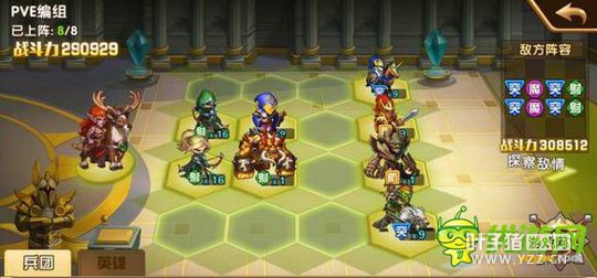 第十三章支线:胆小的恶狼骑士 关卡概况 敌方兵团:恶狼骑士、雷鸟,半兽人 通关奖励:恶狼骑士*5、钻石*50,金币*5W 对敌技巧 仔细观察敌方的阵容,你会发现敌人阵容在第一路和第四路都留有可以安排突击兵团直接进攻的路线。 PVE编组推荐 皇家十字军+僧侣+帝国弩手+木精灵+恶狼骑士+枯木卫士+皇家骑士+独眼巨人 推荐理由:我方第1、4路突击兵团可以轻松绕后攻击对方的后排兵团,而枯木卫士与皇家十字军在第2、3路做防御抵抗,后排射手兵团能够有一个较好的输出环境。 [编辑:叶子猪小秘书]