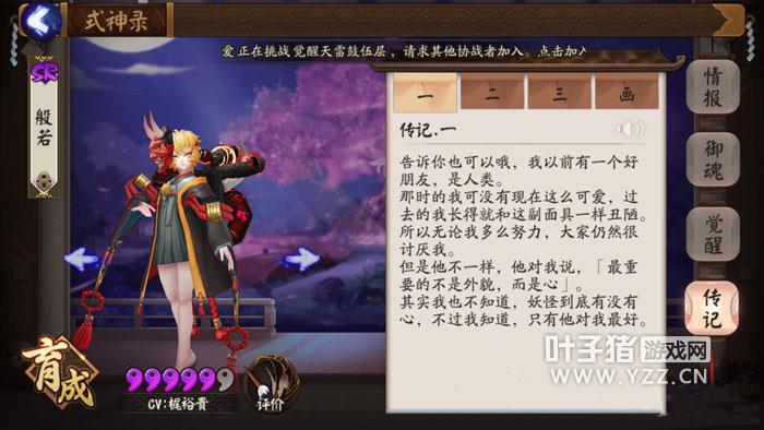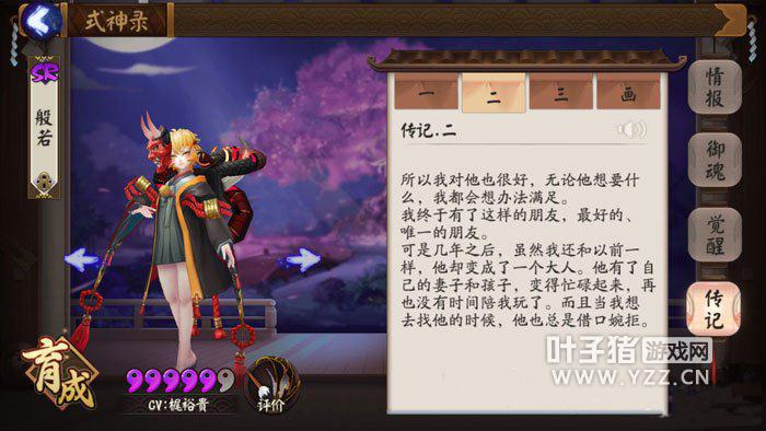 阴阳师般若传记是怎么样的?作为一个美少年,他的传记解锁后说了什么故事?本篇就带来般若的传记解锁后的文字一览,心疼他一下。 传记一 传记二 传记三 觉醒画 了解更多相关信息,请前往 http://www.yzz.cn/sy/yys/ [编辑:不服憋着]