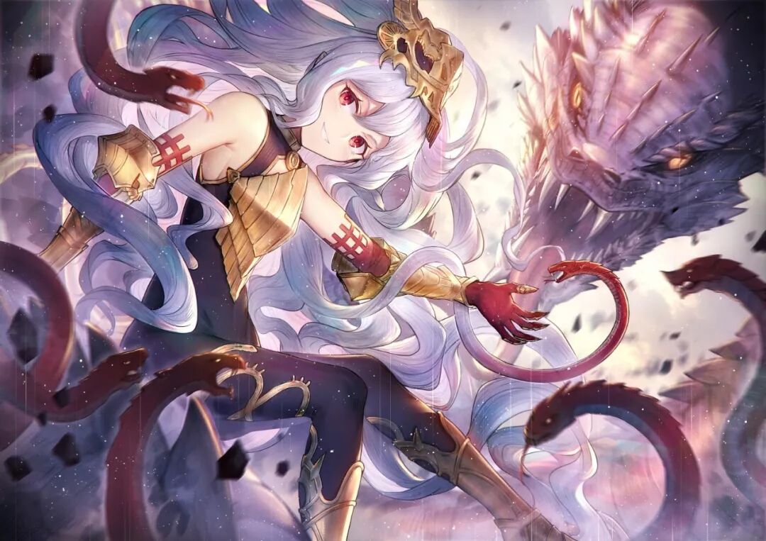 毒牙公主美杜莎身着黑色的紧身衣, 金色的配饰显得神秘高贵, 飘逸的长发化成了群蛇, 群蛇汇集而成的巨蛇, 露出了可怖的獠牙。 引领无数利牙的少女, 发出了清脆又邪异的笑声。 “就让你看看,我认真起来的样子!”