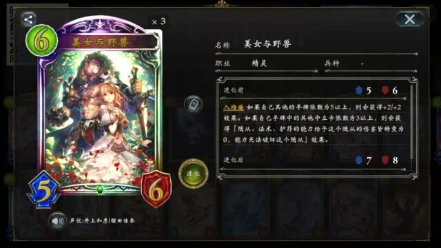 Q:我感觉这套牌好依赖美女与野兽啊,起手要不要全换去找? A:美女与野兽只在极少数对局中起决定性作用,这套牌只需要前期把握住节奏,中期顺利过渡,后期利用中立大哥艾琳等牌大打消耗战,泰山伺机斩杀或是站住野兽即可,不需刻意追求6费准时野兽。