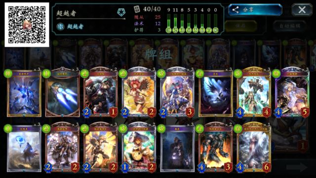 随着双赛制的到来, 中立精灵 在轮换赛制中逐渐成为一方霸主。如果想体验下wld时期影之诗的风格特色,抑或想要稳健上分,那么 中立精灵 绝对是不二之选。 卡组全览 扫描 影之诗国服卡组二维码 , 可快速获取卡组列表! 单卡解析 中立精灵 这个卡组特性,与她的核心卡——美女与野兽一样,中立卡与精灵卡之间的关系如同美女与野兽一样密不可分,因此我们需要详细了解她的每一张卡牌与作用,确保我们能发挥出她的完整实力。 【天弓】前期可以当做普通的2/2,进化的1点伤害十分灵活,可以用于补刀,有时也可当做直伤。——出自【巴哈姆特降临】补充包 【歌剧姬】一般当做普通2/2,在对阵慢速自闭套牌时利用她的进化特效可以打对手一个措手不及,其余时刻不能指望利用她的进化。——出自【梦境奇想】补充包 【猪】自带1点小奶,进化后更是有足足3点,对抗快攻的利器,有时一点血量也能助你逃离对手斩杀,简单好用。Ps:歌声很好听。—— 出自【时空转生】补充包 【双击】十分强大的解牌,对抗快攻,潜伏更是一大利器, 中立精灵 的关键仰仗。—— 出自【梦境奇想】补充包 【凯撒】衍生物的2/2萝卜能够帮助 中立精灵 保证自己的手牌资源以配合美女与野兽与弥补中立体系过牌较弱的缺点。—— 出自【巴哈姆特降临】补充包 【歌者】十分好用的过牌, 中立精灵 对手牌张数与质量具有一定要求,她在其中必不可少。—— 出自【星神传说】补充包 【女装】针对内战与结界,本身也是中立牌。与莉莉相比对卡组相性更佳。—— 出自【时空转生】补充包 【赫特尔】同样是灵活的直伤,可以补刀达成一换二,可以斩杀,为美女与野兽铺路的大将。—— 出自【梦境奇想】补充包 【泰山】提供斩杀,10费两个4/5守护对于绝大多数对手都是极为头疼的存在。—— 出自【诸神狂岚】补充包 【艾琳】厚实的守护,带3点回复,增效尤其实用,中后期的关键卡牌。—— 出自【诸神狂岚】补充包 【野兽仙贝】核心,保证特效使用它基本能够奠定对局胜负。值得注意的是,这套牌组并不追求准时使用它。—— 出自【梦境奇想】补充包 【空天】节奏继承者,配合中立大哥们能达成多种解场与斩杀。—— 出自【巴哈姆特降临】补充包 【愈音】主要用途为配合美女与野兽达成18点超高斩杀,但是这套牌不追求这一极限,故只放入1。—— 出自【诸神狂岚】补充包 【东山】虽然 中立精灵 堆墓能力不强,但她依旧能提供可观的回复。由于自身特性与曲线原因,只适合1。—— 出自【诸神狂岚】补充包 【奏天】与空天配合能达成强力的aoe与单解,裸下也不是问题,4奶与8/8身材与她的潜在威胁值得这个9费。—— 出自【诸神狂岚】补充包 【巴哈】一卡逆转的代表,修改后不能破除结界有弊亦有利。由于巴哈大多时候并不能一击制胜,此套牌只放入了2。—— 出自【巴哈姆特降临】补充包 【宙斯】配合空天能够直接7费便开始走脸,提供一部分斩杀,也能护脸。由于10费打宙斯对于 中立精灵 这个卡组并不契合节奏,故带1。—— 出自【诸神狂岚】补充包 主流卡组对局 在同期国际服版本中的使用率上,以次元魔女·桃乐丝为核心的随从巫师处于尖端,能够进行跳费获取强力aoe手段的各式跳费龙次之,精灵和唤灵师也有着不低的使用率,这些职业也是比赛中选手较为青睐的。