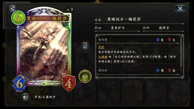 圆桌武士·高文 在攻击时能让手牌中全部指挥官卡费用-1,从而使得主战者可以在一回合内打出原本无法达成的卡牌配合,控场与解场都有着不错的效果 不灭英杰·罗兰 黑暗剑士·梅莉莎 (点击卡牌头像即可查看卡牌详情) 不灭英杰·罗兰 入场后可带来一张“受到伤害最高为4”的护符,既能防止对方高伤害打脸,也能使得场上随从更难被解除,推荐保留~