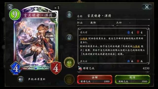巨兽奇美拉 能根据相应魔力增幅次数获得+1的伤害,在后期无论用于斩杀或是解场都是不错的选择,卡组中放入此卡也经常能起到绝境翻盘的效果。 言灵使者·洋荷 魔法始祖·马纳历亚 (点击卡牌头像即可查看卡牌详情) 言灵使者·洋荷 能让手牌中全部随从卡变为0费!(但不可发动入场效果)配合高面板随从能完成一波令人绝望的铺场,基本能起到劝退的效果。
