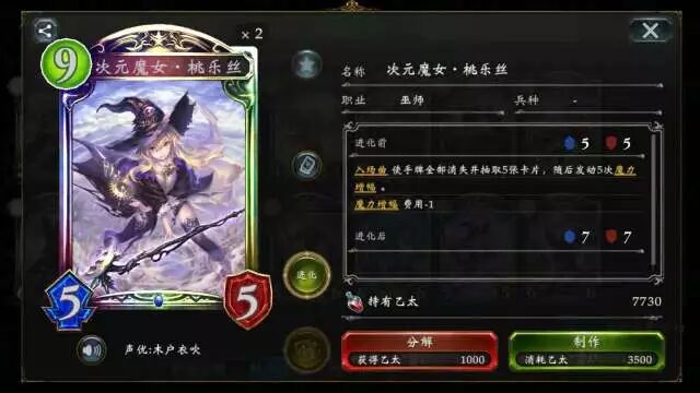 (点击卡牌头像即可查看卡牌详情) 次元魔女·桃乐丝 可利用魔力增幅让自身费用缩减到最低0费 ,入场时使得主战者自身手牌全部消失,并重新抽取五张卡牌(并对新手牌进行五次魔力增幅),有效地弥补了中期铺场后手牌空缺的问题。可谓随从法的核心虹卡,一定要好好保留~