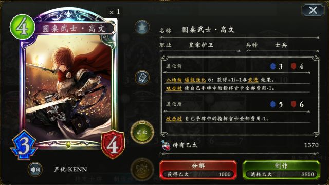 沉默的炎将·玛尔斯 则能给予每个入场随从+0/+1与攻击随从时的+1/+0,能有效地在保证自身场面的情况下减轻敌方场面压力。 雷维翁剑士·阿尔贝尔 圆桌武士·高文 (点击卡牌头像即可查看卡牌详情) 雷维翁剑士·阿尔贝尔 在9费时能攻击两次并不会受到伤害,无论用于解场亦或是打脸都是很好的选择确实是一张不可多得的实用卡牌~(一库走一库走)
