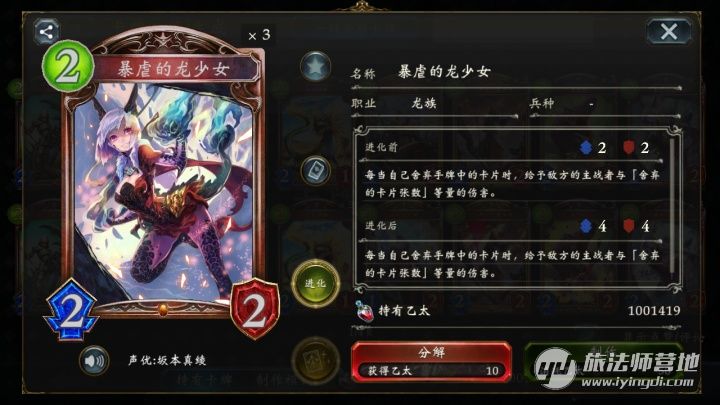 龙族擅长用比对手费用更高的牌碾压对手,适合喜欢大型随从的玩家。 核心机制 觉醒 指“自己的能量点最大值大于或等于7”的状态。写有“如果觉醒状态已发动”的能力,将会在自身能量点最大值大于或等于7时发动。 卡牌为「黑龙骑士·法露特」