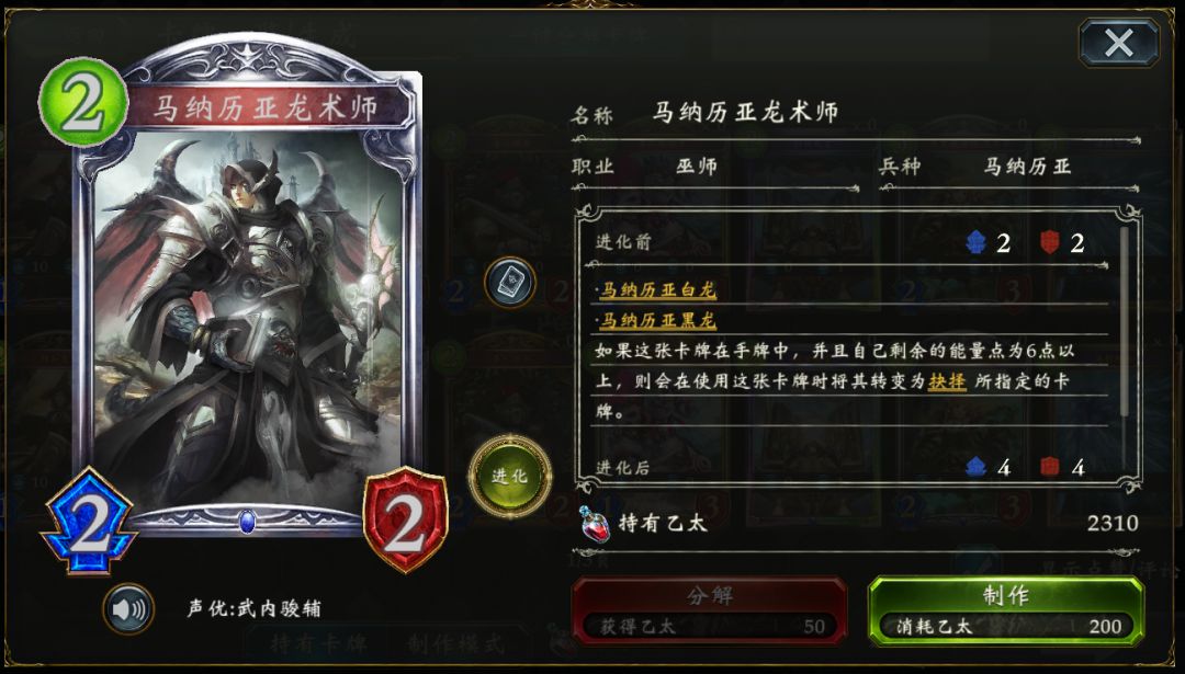 3费进化随从一般都比较尴尬,艾尔莎的效果又不算十分强力。 【指定:1】 偶尔出现在 土法 构筑中。 【无限:1】 【总分:1】 Pic:马纳历亚龙术师 白龙比较鸡肋,但黑龙与魔法始祖‧马纳历亚配合很好,可以打出很高的伤害。 【指定:3】 直伤法 的必备组件,快土法也会使用他,以增加后劲。 【无限:1】 偶尔出现在直伤法之中。 【总分:3】