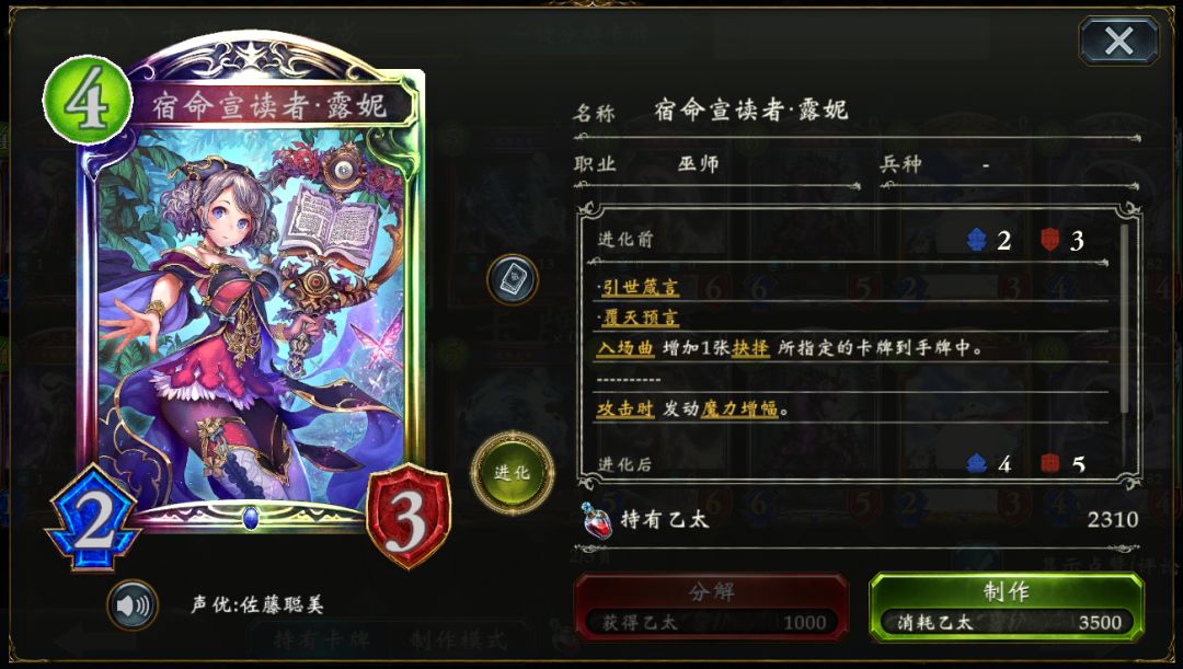 不错的卡牌,但 定位尴尬 ,各种思路的巫师牌组中都没有它的位置。 【指定:1】 偶尔作为外挂组件出现在 大美法 中。 【无限:1】 偶尔出现在 桃乐丝法 中。 【总分:1】