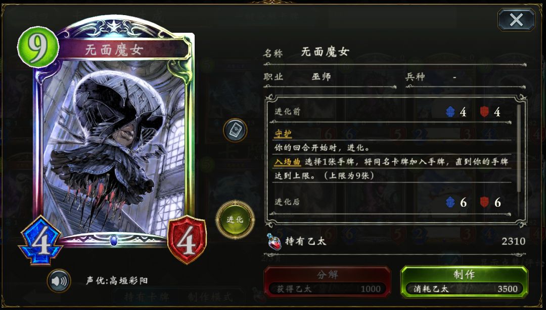一般作为 补牌手段 使用,但偶尔也能作为 致胜 的B计划。 【指定:4】 大美法必备组件。言灵中立法也会使用她,用来配合复醒的禁忌。 【无限:2】 在无限中显得比较笨重,但无论是超越法还是节奏法都有可能外挂她。 【总分:4】