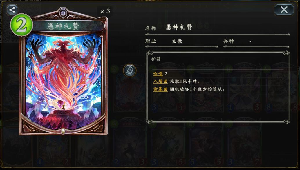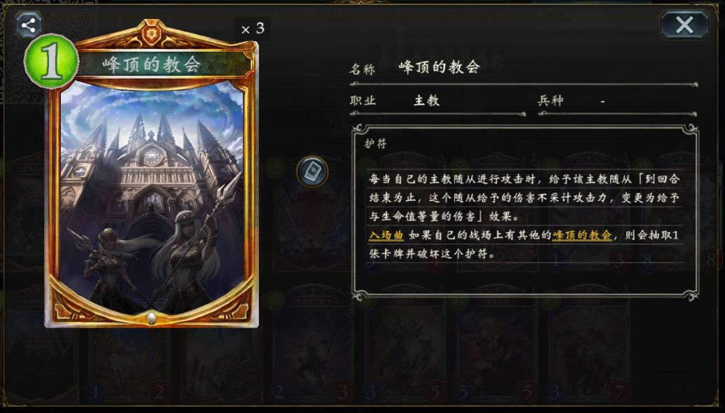 牌组构成 神社主教有2种作战思路,第1是利用神社的解场能力 耗尽对手的资源取胜 ,第2是利用神社在对手空场时的蹭血能力 抢血取胜 。