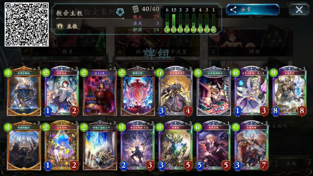 本篇文章将为大家介绍 指定系列 的强力牌组 从快攻到控制,从中速到组合技 在这些 不同职业 、 不同风格 的牌组中 一定有你喜欢的一款! 今天, 给大家推荐的是指定系列 主教 的卡组 教会主教 推荐度:★★★★★ 指定系列 所需乙太:67400 教会主教是非常典型的 中速 卡组 卡组极强的 爆发力 常被玩家们津津乐道 同时,在面对某些对局时 也可以根据手牌结构进行 降速 天曜盾甲 的后期致胜能力毋庸置疑