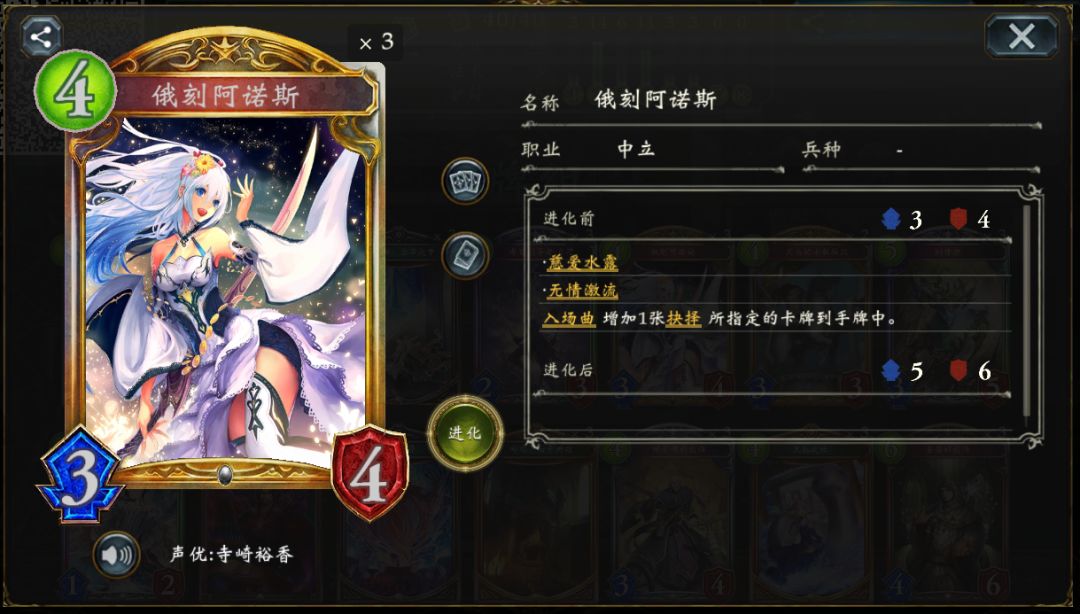 俄刻阿诺斯同样适合神社教。神社在场的情况下,她制造的慈爱的雨滴相当于 1费打2回2 ,效率极高。