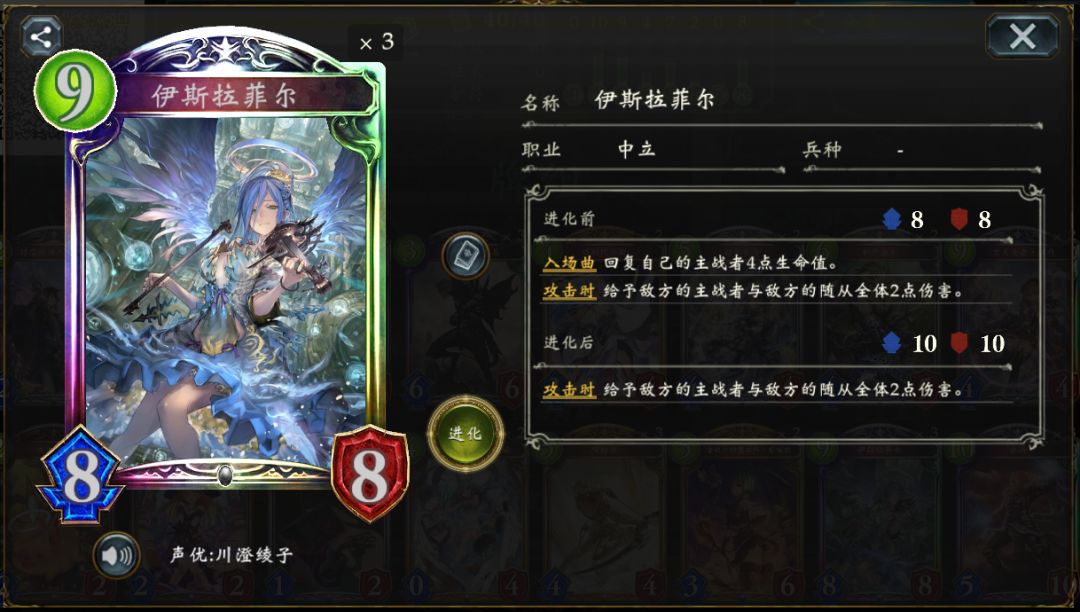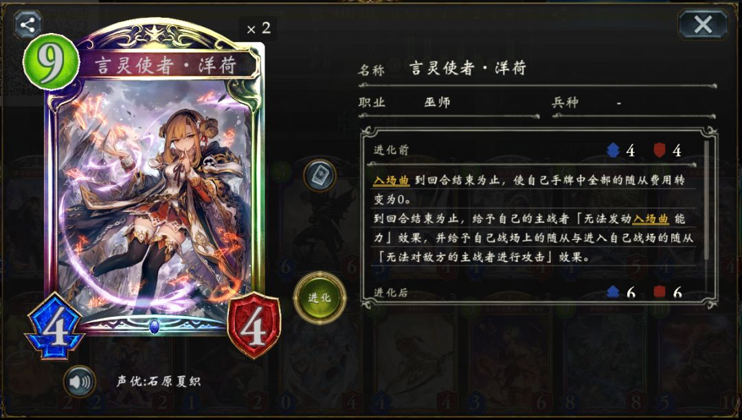 存活到9费后利用 言灵使者·洋荷 将 伊斯拉菲尔 、 宙斯 等强力卡牌变为0费完成铺场反扑,此时有进化点可以进化彷徨的诗人·艾尔塔稳定场面