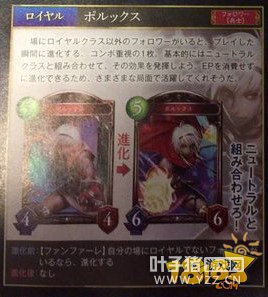 职业:皇室 稀有度:铜 消耗:5 类别:随从 身材:4/4→6/6 入场曲:若己方场上有非皇室随从,进化此随从。