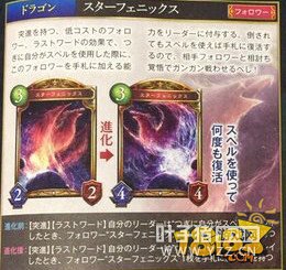 职业:龙 稀有度:金 消耗:3 类别:随从 身材:2/2→4/4 突进 谢幕曲:使己方英雄获得“己方下一次使用法术时,将1张星辰凤凰加入手牌”的能力。