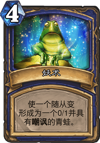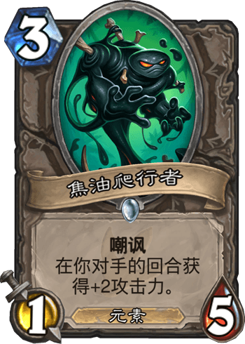 简称:炎爆 这种情况实在是太多了,根本统计不过来。萌新只需要熟悉熟悉卡,就能明白这种简称代表那张牌了。 所有传说武器都同一称为“橙武”。 2:以数字命名 玩家们喜欢用数字来称呼一些卡。通常来讲是卡的费数(卡左上角6边形中的数字)+随从攻击力(左下角黄色球中的数字)+随从血量(右下角红色血滴中的数字)。一般情况下,那些同一费数但是身材独一无二的随从经常会用这种方式命名。这种称谓属于看情况的那种,没什么讲究。更多时候则在特定情况下暂时给予特定一个随从以这种方式命名,比如对手放了一个“剧毒的蜗牛”,2费1攻2血,up主懒得念它的名字,就有可能称呼它“二一(或者是“夭”,地方方言中的一)二”,这种情况下面不进行介绍。
