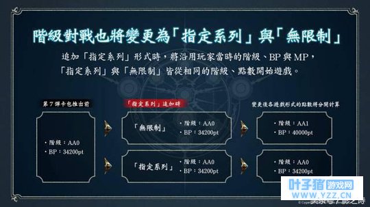 现有的模式被官方称之为无限制模式,新版本将开启指定系列模式,模式使用的卡牌将会是最新5弹卡包+部分永久卡,这样可以让新手的入坑门槛更低。方便吸引新玩家加入。同时也在考虑设定禁限卡表,保证无限制模式的竞技性和平衡性。