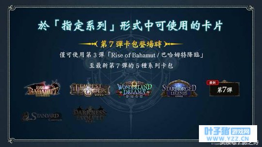 第八弹扩展包登场时,巴哈姆特之怒也将退出指定系列,只能在无限制模式中使用