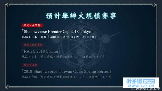 11月1日晚18:00,影之诗制作人木村唯人出席发布新节目Shadowverse Next,本次发布会可谓干货满满,最重要的消息就是影之诗将要开始”退环境“啦!还发布了第八职业伊昂(yuwan)以及在竞技场模式中增加比赛功能。下面图比较多,请大家跟随猫猫的步伐一张一张的来看 【全场实况录像】 https://www.bilibili.com/video/av15926274/ 【1.全新游戏形式-指定系列】