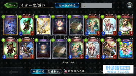 可以看你所拥有的所有卡片,右下角是尘,制作模式就用尘换卡 不过只能制作普通版就是了