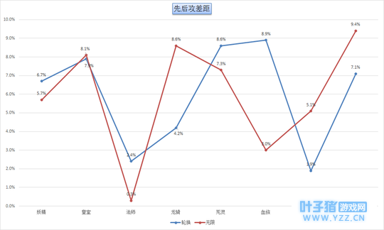 本周的先攻胜率涨幅明显,双模式16个先后攻差距中,只有无限血族的先攻胜率有了下降,除此之外无一例额外全是上涨。