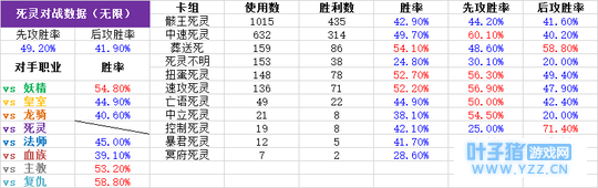 在本周也依旧维持在第四位(11.5%→11.6%)。同时本周不光是使用率,死灵的胜率也是第四(49.6%→49.2%)。