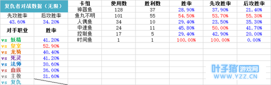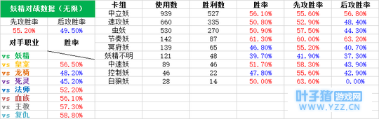 这些高质量的本职卡,让中立妖在对阵各种卡组时都能做到不落下风。目前轮换中立妖几乎只怕神器鱼(48.4%)、中立法(38.9%),而无限中立妖则是只虚一手骸王死(34.7%)。