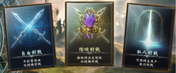 游戏的重要选项,分为:自由对战、阶级对战、私人对战。