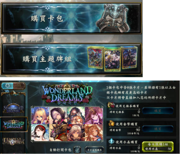 购买卡包(重要):分为购买卡包和购买主题卡组。