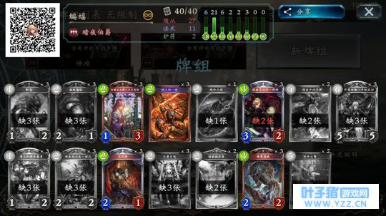 投石姬攻略组-安静(原阿汤世界第一可爱) 影之诗国服不限号内测之际,大量萌新入坑。如何在有限的资源中打造出相对高强度的卡组来迅速积累资源,成为了当前的重点。今天分享一套在无限模式中的强度套牌速攻伯爵(同时附上上位替换),大家可以扫描左上角二维码快速打造套牌。
