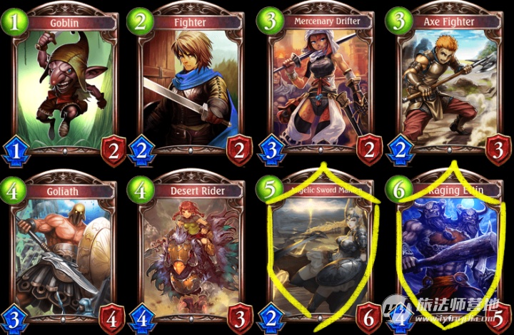 的标准模板,影之诗有非常优秀的1费随从,它们彼此之间常常无法直接交换对方(对比隔壁的麻风侏儒),而且即便是1/1/2的哥布林,在享受+1/+1BUFF后也能直接吃掉2/2随从。这样对照下来,绝大部分的3费随从身材就显得非常差了,因为无法触发效果的3费生物通常只有2/3或3/2甚至1/4的面板,而那些有进场效果的甚至只有2/2身材,总之绝大部分时候是一个可以被2费卡直接交换的存在。4费非衍生物随从通常只有3/4或4/3的身材,而匪夷所思的一幕出现了——5、6费没有白板生物,下一个白板生物是7费的7/6/7帝皇巨象。这是为什么?
