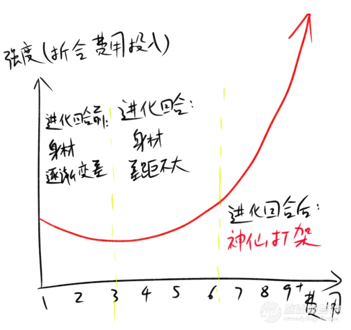 原因很简单,7费以上随从由于突破了进化回合的限制,身材模型已经不具有特别大的意义,此外它们还全都可以被4攻随从进化一口吃掉或者3~5费单解处理,所以,如果我们要讨论身材,还是放在进化回合及以前比较好。