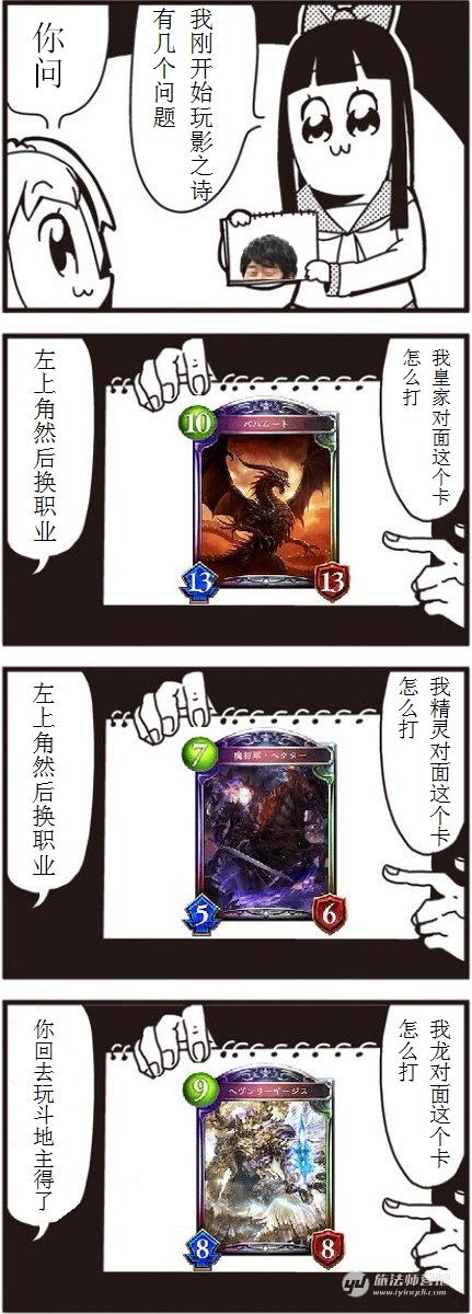 据此,我列出一些优质的替换随从列表给卡不齐的纯新玩家参考——精灵年幼猫人 (1/1/1,连锁2:+1/+1):实质1/2/2,赚费用,不过容易亏卡。 甲虫战士 (3/2/3,连锁2:+1/+1疾走):身材无损失,特定情况可以斩杀。可用于低价卡组。 千年妖狐·尤艾尔 (4/3/4,进化后4/5,己方回合结束时对1个随机敌随从造成1点伤害,执行2次):身材无损失,相当于弱化版4/3/4打2。4费随从不足时的下位替换。 精灵执事 (4/2/5,守护,每当使用1张费用6或以上精灵随从则费用-3):进化后7体力,可渡过中期。4费随从不足时的下位互换。 森绿守护者 (5/3/5,守护,离场获得2张妖精):身材无损失,守护也比较有用。4费随从不足时的下位互换。 皇家护卫持刀窃贼 (3/2/2,交战时抽1牌):宝贵的抽牌卡。3费随从不足时的下位互换。 苍穹提督·莫妮凯 (5/4/4,进场召唤1个1/1骑士,进化时对1个敌随从造成等同己方场上随从数量的伤害):1卡铺场、进化1解2的好卡。5费随从不足时的下位互换。 海底都市王·乙姬 (6/3/4,进场召唤1/2的乙姬护卫队直至满场):在新手时期还是比较有用的,整个卡组高费卡不足时的下位互换——如果抽到了的话。 龙牙破碎者 (8/3/8,必杀,突进,攻击时对敌英雄造成等同攻击力的伤害):直击+破坏+高体力,非常不错的面板,整个卡组高费卡不足时的下位互换。 巫师牌不足的情况不要玩巫师。每个体系的要员几乎全都不可或缺,而且还贵得要命。 强烈建议没有资源的新手看到巫师任务直接换,或者选择中立体系。 龙烈风之龙 (2/2/1,进场若已觉醒则获得疾走):便宜疾走龙组件。 吐火蜥蜴 (2/2/1,进场对1敌随从造成1点伤害):便宜脸龙组件。 纯圣白龙 (3/2/2,不能被攻击):便宜脸龙组件——新手时期“不能被攻击”已经是很强劲的能力了。 狂妒海龙·利维坦 (4/6/5,非觉醒不得攻击):身材严重超模,可用于中期随从不足时的下位互换。 海剑龙 (5/4/4,进场若已觉醒则获得疾走):便宜疾走龙组件。我至今还在用。 猾恶飞龙 (5/4/5,离场获得1张1费打2的法术):身材无损失,离场提供手牌。中期随从不足时的下位互换。 怒炎古龙 (5/4/4,进场1伤AOE,增效8改为3伤AOE):罕见的站场+AOE。中期随从不足时的下位互换。 死灵法师追命亡灵 (3/2/3,潜伏):身材无损失,潜伏可踢脸,可用于便宜速死。 骸骨骑士 (3/3/1,离场召唤一个1/1骷髅):踢脸……挺疼的。可用于便宜速死。 死灵使役使 (3/2/2,离场对敌1伤AOE):便宜AOE的代表,可用于便宜控死。 丧死追寻者 (3/2/3,每当其他随从进化+2墓):便宜中速、控制死灵可用。 骸骨士兵 (3/1/4,离场+2墓):便宜中速、控制死灵可用。 惊夜术士 (4/4/3,进化时召唤2个1/1幽魂):看重的是幽魂的2点伤害,可用于便宜速死。 幽魂骑手 (6/5/5,守护,离场令随机我方1随从得到守护):非常能苟,可用于便宜控死。 邪眼魔·巴洛尔 (6/3/6,必杀,离场对敌3伤AOE):如果游戏初期抽到这张卡可以加入控制体系。 诅镰收割者 (7/5/4,进场通灵4打敌英雄4):可作为斩杀,可用于便宜速死。