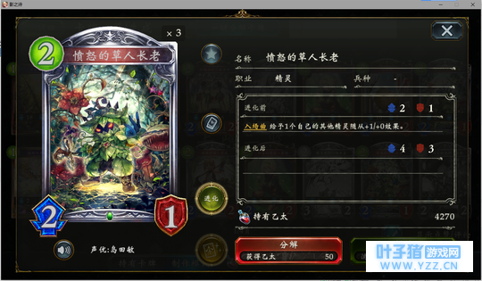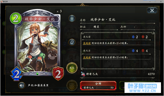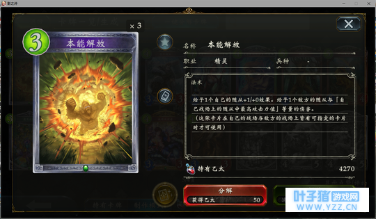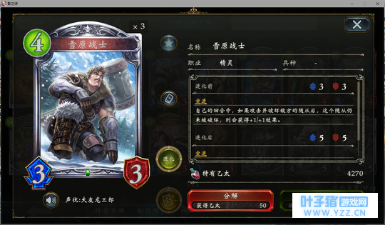 3分 事实上,这张卡最赚的时候就是4费丢下去白吃对面一个323然后站一个4/2,帮你省下一个进化点。但是大多数时候只能算一个4费打3的解牌。。