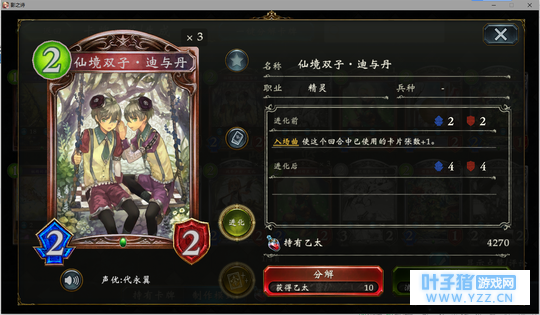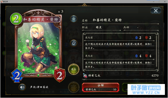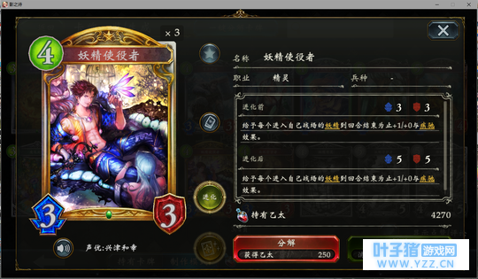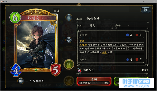 3.5分 你游妖精虹卡担当(误)。本身特效让他几乎能稳定输出5点伤害。唯一的问题就在于5-6回合左右丢出去基本等同于一个554的白板。但是这也是可以接受的。