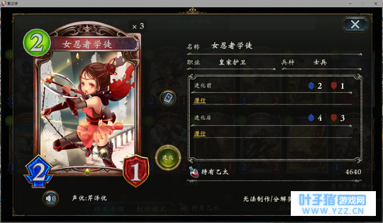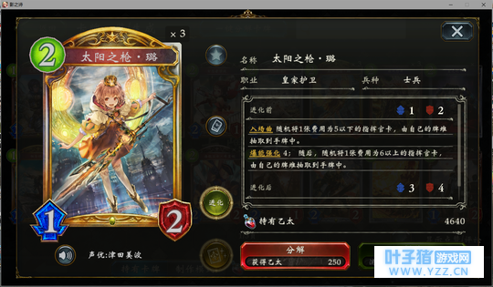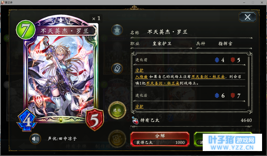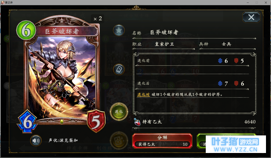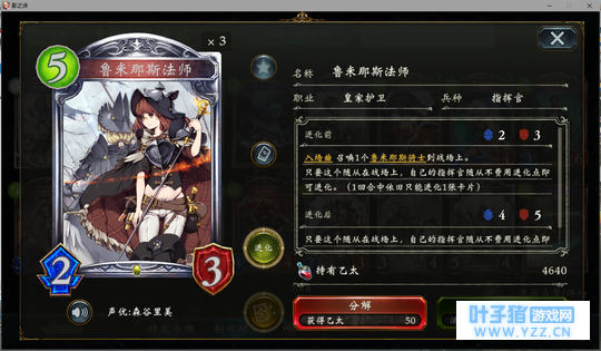 4分 进化后5血的身材在4-5回合时是非常强力的解牌。几乎能稳定保证1换2,甚至做到1换3。不过在没有进化点的情况下偏弱,基本抓1张即可。