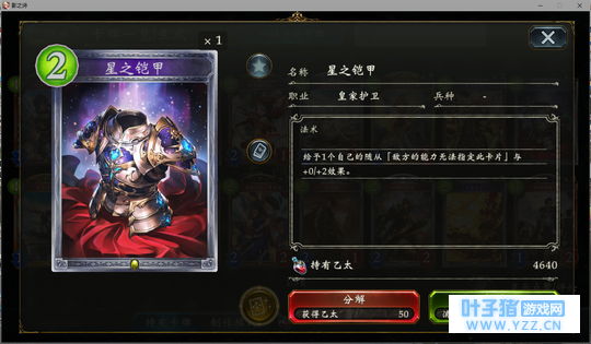 4分 白嫖将军,打没有消灭的职业很好用,触发特效以后非常赚,但是不建议无脑下将军。如果对面不铺场8费的将军卡手上会很难受。